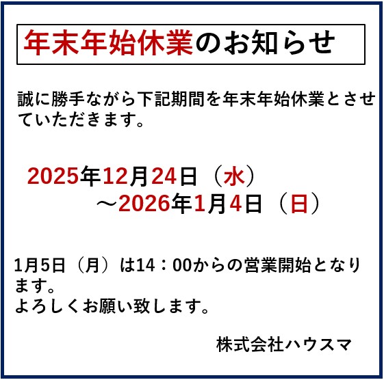「2025年 年末年始休業のお知らせ」2025-12-25