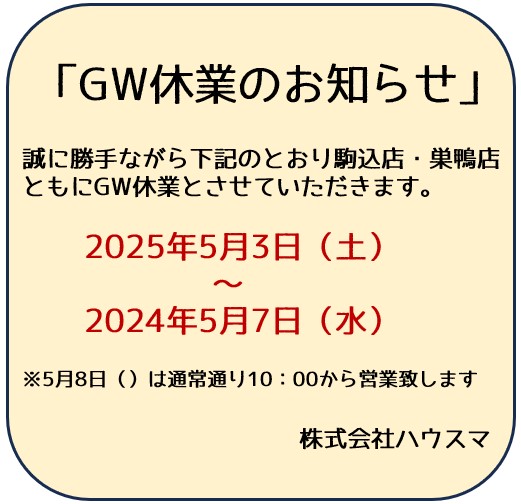 「GW休業のお知らせ」2025-04-25