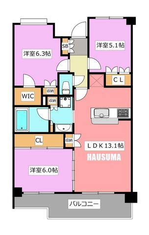 3LDK( LDK13.7畳/洋室6.3畳/洋室5.1畳/洋室6畳 ) |