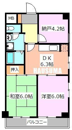 築年月 1990年3月  間取り 2SDK( DK6.3畳/和室6畳/洋室6畳/S4.2畳 ) 専有面積 49.29m2