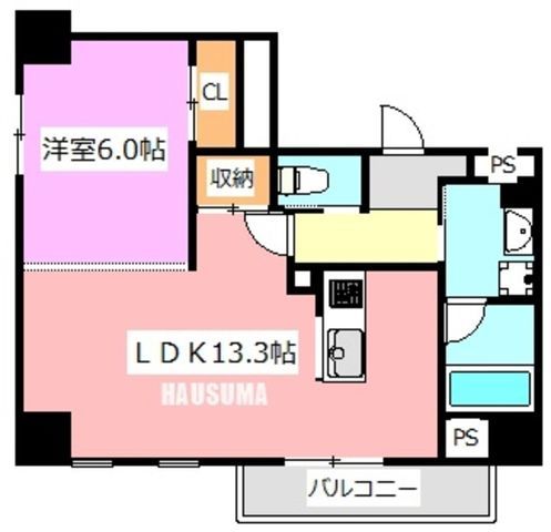 1LDK( LDK13.3畳/洋室6畳 ) |