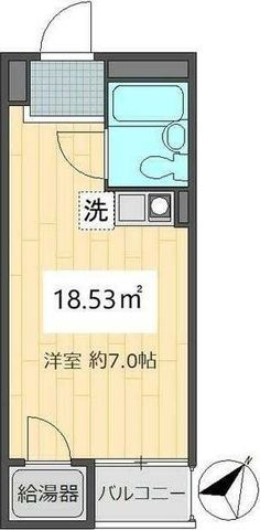 - 間取り:ワンルーム / 専有面積:18.53m2