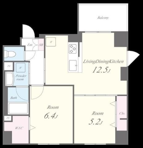 2LDK( LDK12.5畳/洋室6.4畳/洋室5.2畳 ) |