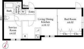 1SLDK( 洋室6畳/S4畳/LDK10.1畳 ) |