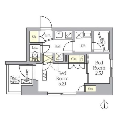 2K( 洋室5.2畳/洋室2.5畳/K3畳 ) |