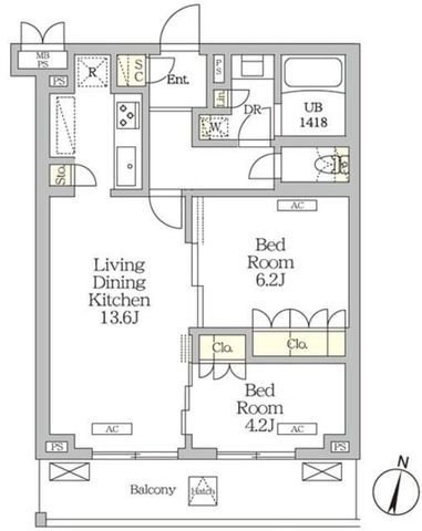 2LDK( LDK13.6畳/洋室6.2畳/洋室4.2畳 ) |