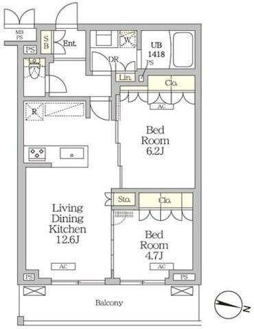 2LDK( LDK12.6畳/洋室6.2畳/洋室4.7畳 ) |