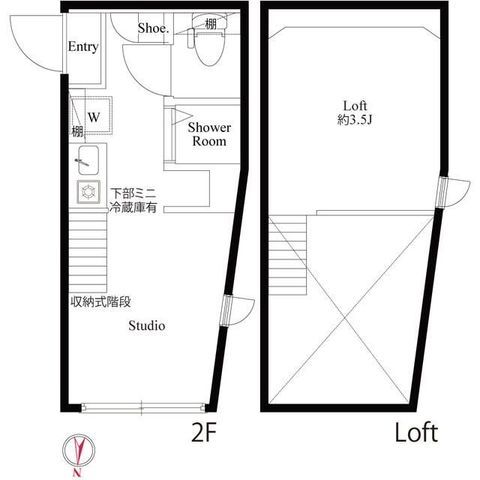 | 種別 / 構造 | アパート / 木造 | 主要採光面 | 北 | 所在階 / 階数 | 2階 / 2階 |