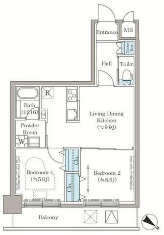 2LDK( LDK9.9畳/洋室5.5畳/洋室5畳 ) |