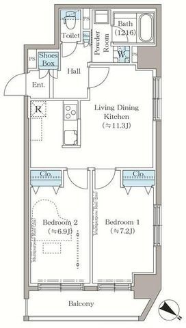 2LDK( LDK11.3畳/洋室7.2畳/洋室6.9畳 ) |