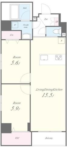 2LDK( LDK15.5畳/洋室5.9畳/洋室5.6畳 ) |