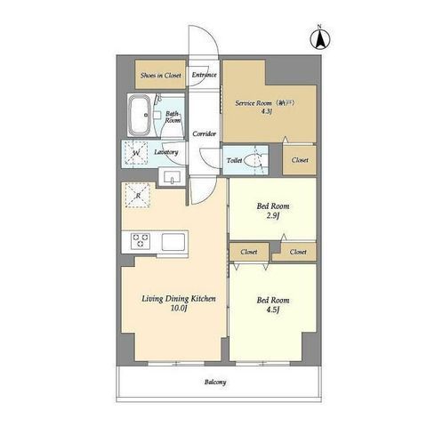 2SLDK( LDK10畳/洋室4.5畳/洋室2.9畳/S4.3畳 ) |