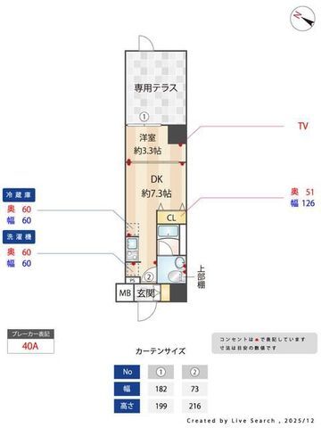 | 築年月 | 新築 | 間取り | 1DK( DK7.3畳/洋室3.3畳 ) | 専有面積 | 25.65m2 |