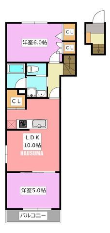 2LDK( LDK10畳/洋室5畳/洋室4畳 ) |