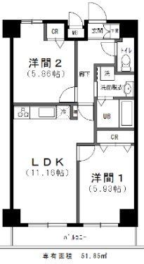 | 築年月 | 2006年8月 | 間取り | 2LDK( 洋室5.8畳/洋室5.9畳/LDK11畳 ) | 専有面積 | 51.85m2 |