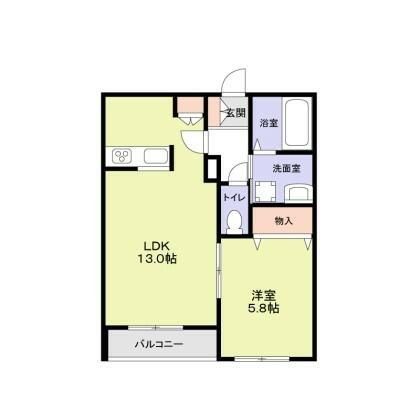 | 築年月 | 2020年2月 | 間取り | 1LDK( LDK13畳/洋室5.8畳 ) | 専有面積 | 46.14m2 |