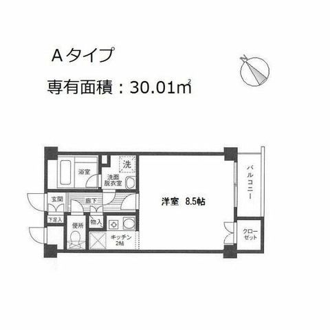 | 築年月 | 2000年10月 | 間取り | ワンルーム( 洋室8.5畳 ) | 専有面積 | 30.01m2 |