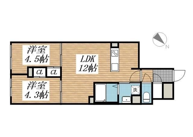 | 築年月 | 新築 | 間取り | 2LDK( LDK12畳/洋室4.5畳/洋室4.3畳 ) | 専有面積 | 45.79m2 |