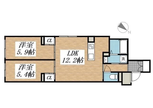 | 築年月 | 新築 | 間取り | 2LDK( LDK12.2畳/洋室5.9畳/洋室5.4畳 ) | 専有面積 | 51.41m2 |