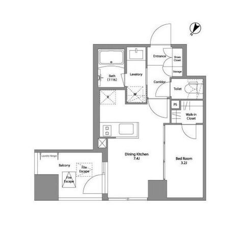 | 築年月 | 2022年12月 | 間取り | 1DK( DK7.4畳/洋室3.2畳 ) | 専有面積 | 27.52m2 |