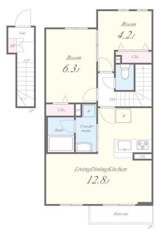| 築年月 | 2022年11月 | 間取り | 2LDK( LDK12.8畳/洋室4.2畳/洋室6.3畳 ) | 専有面積 | 54.15m2 |