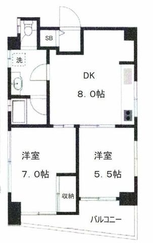 | 築年月 | 1990年1月 | 間取り | 2DK( 洋室7畳/洋室5.5畳/DK8畳 ) | 専有面積 | 43.45m2 |