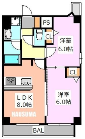 | 築年月 | 2006年6月 | 間取り | 2DK( DK8畳/洋室6畳/洋室6畳 ) | 専有面積 | 51.35m2 |