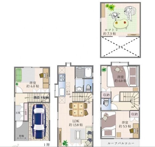 | 種別 / 構造 | 一戸建て / 木造 | 主要採光面 | 南 | 所在階 / 階数 | - / 3階 |