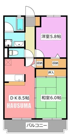 | 築年月 | 1999年9月 | 間取り | 2DK( DK8.5畳/洋室5.8畳/和室6畳 ) | 専有面積 | 51.61m2 |