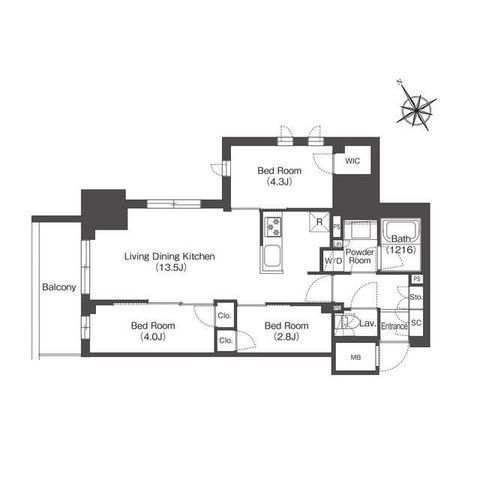 | 築年月 | 2024年9月 | 間取り | 3LDK( LDK13.5畳/洋室4.3畳/洋室4畳/洋室2.8畳 ) | 専有面積 | 55.69m2 |