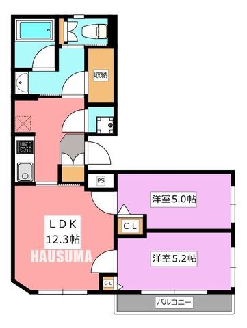 築年月 新築  間取り 2LDK( LDK9.3畳/洋室5.2畳/洋室5畳 ) 専有面積 55.95m2