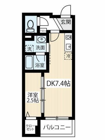 | 築年月 | 2023年1月 | 間取り | 1DK( 洋室2.5畳/DK7.4畳 ) | 専有面積 | 26.78m2 |