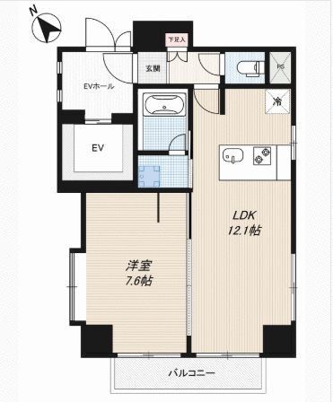| 築年月 | 1987年3月 | 間取り | 1LDK( LDK12.1畳/洋室7.6畳 ) | 専有面積 | 43.5m2 |