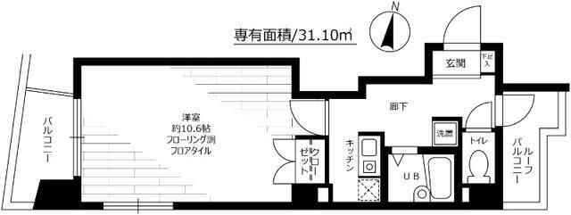 | 築年月 | 2000年6月 | 間取り | 1K( 洋室10.6畳/K2畳 ) | 専有面積 | 31.1m2 |