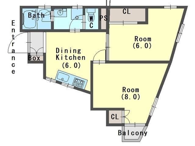| 築年月 | 1992年11月 | 間取り | 2DK( DK6畳/洋室8畳/洋室6畳 ) | 専有面積 | 49.52m2 |