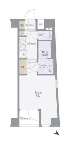 | 築年月 | 2008年5月 | 間取り | 1K( 洋室7.6畳/K2畳 ) | 専有面積 | 25.38m2 |