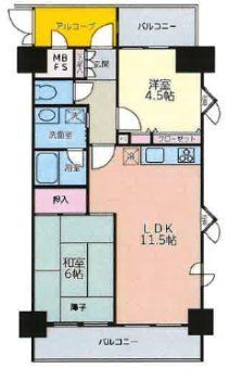 | 築年月 | 1993年12月 | 間取り | 2SDK( LDK11.5畳/和室6畳/洋室4.5畳 ) | 専有面積 | 50.4m2 |
