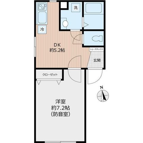 | 築年月 | 2018年10月 | 間取り | 1DK( DK5.2畳/洋室7.2畳 ) | 専有面積 | 26.98m2 |