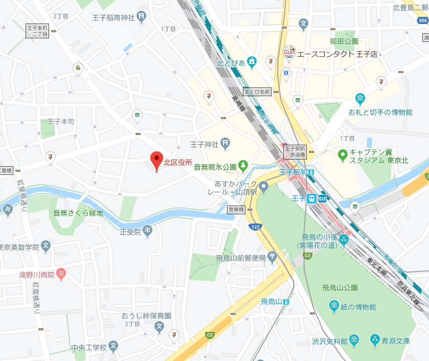 都電荒川線「王子駅前駅」徒歩6分開庁時間 8:30~17:00 駐車場 あり URL http://www.city.kita.tokyo.jp/index.html