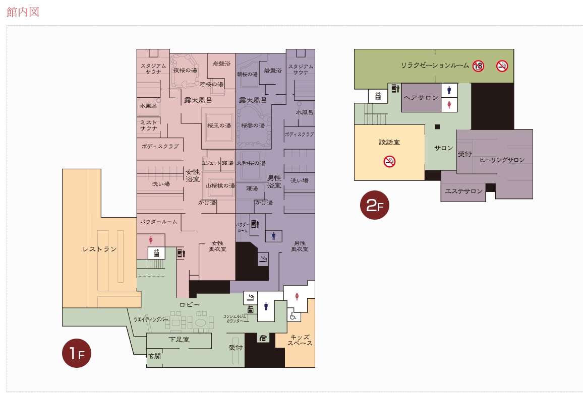 入館料 - 大人 1,320円 子供(3歳以上小学生未満) 770円 回数券 - 11枚綴り 13,200円 岩盤浴回数券 - 会員12枚綴り 8,800円 一般12枚綴り 11,000円 レンタル用品 - フェイスタオル 165円 バスタオル 275円 NEWタオルセット 385円 館内着 330円 バスタイムカバー 330円