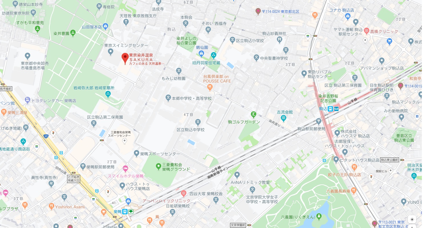 名称 東京染井温泉 所在地 東京都豊島区駒込5-4-24 最寄り駅 JR山手線「駒込駅」徒歩10分