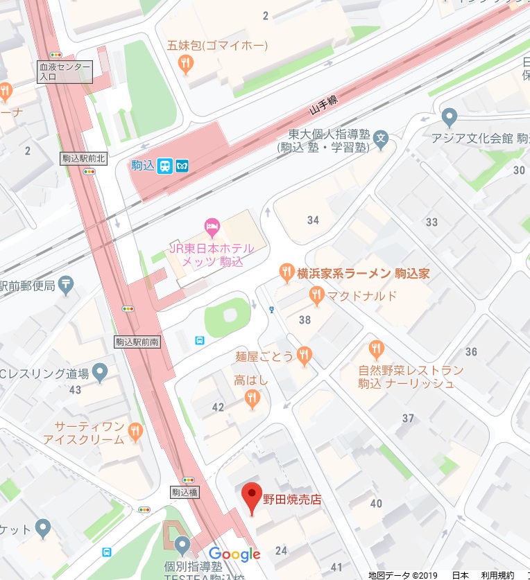 名称 野田焼売店 駒込本店 所在地 東京都文京区本駒込6-24-24 最寄り駅 山手線「駒込駅」徒歩2分