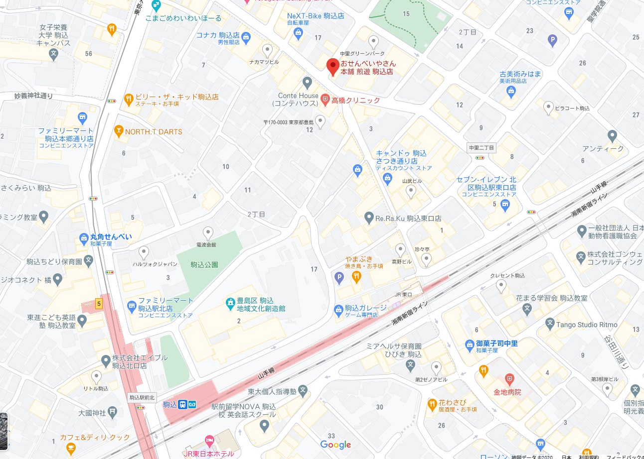名称 おせんべいやさん本舗 駒込店 所在地 東京都北区中里2-16-3 最寄り駅 JR山手線「駒込駅」徒歩4分