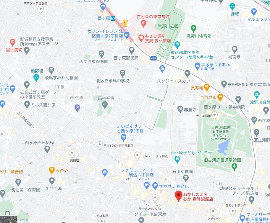 名称 おかしのまちおか 所在地 東京都北区西ヶ原1-63-11 最寄り駅 J東京メトロ南北線「西ヶ原駅」徒歩10分