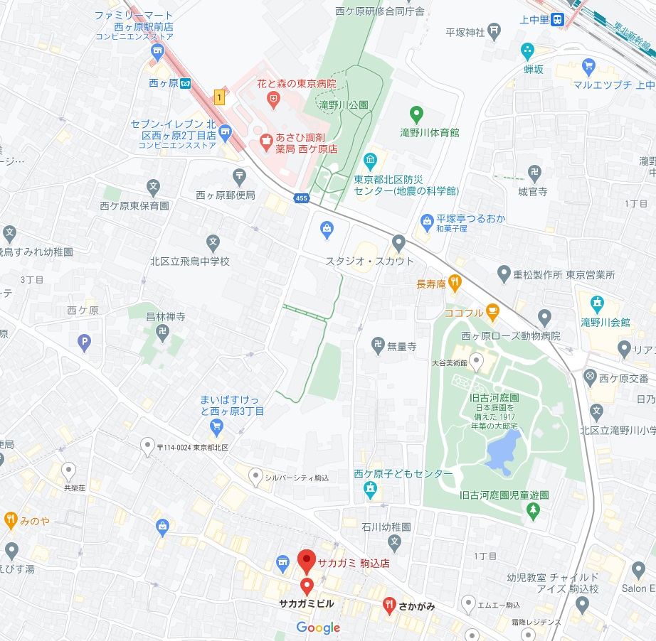 名称 サカガミ駒込店 所在地 東京都豊島区駒込6-35-1 最寄り駅 J東京メトロ南北線「西ヶ原駅」徒歩10分