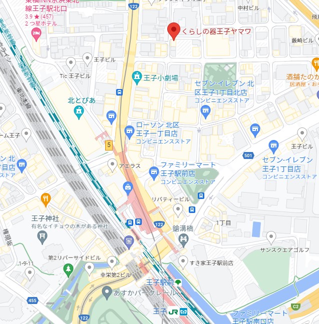 名称 くらしの器王子ヤマワ 所在地 東京都北区王子2丁目32−2 最寄り駅 京浜東北・根岸線「王子駅」徒歩6分
