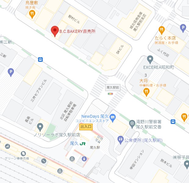 名称 B.C.BAKERY直売所 所在地 東京都北区昭和町2丁目7−3 最寄り駅 京浜東北線「尾久駅」より徒歩2分 駐車場 なし 電話 03-5901-8650 営業時間 平日