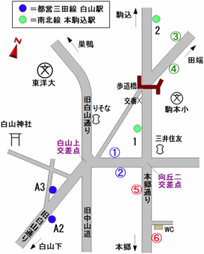 白山1・5丁目 向丘1・2丁目 千駄木1・5丁目 都営地下鉄:白山駅