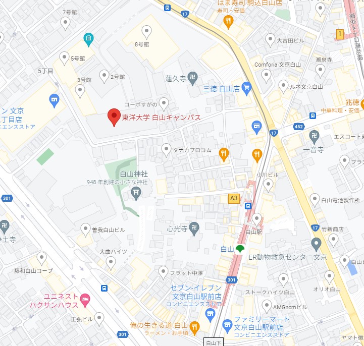 名称 東洋大学 白山キャンパス 所在地 東京都文京区白山5丁目28−20 最寄り駅 都営三田線「白山駅」徒歩5分