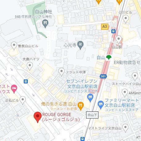 名称 ROUGE GORGE(ルージュゴルジュ) 所在地 東京都文京区白山4丁目33−21 最寄り駅 都営三田線「白山駅」徒歩3分 駐車場 なし 電話 03-6801-8148 営業時間 平日